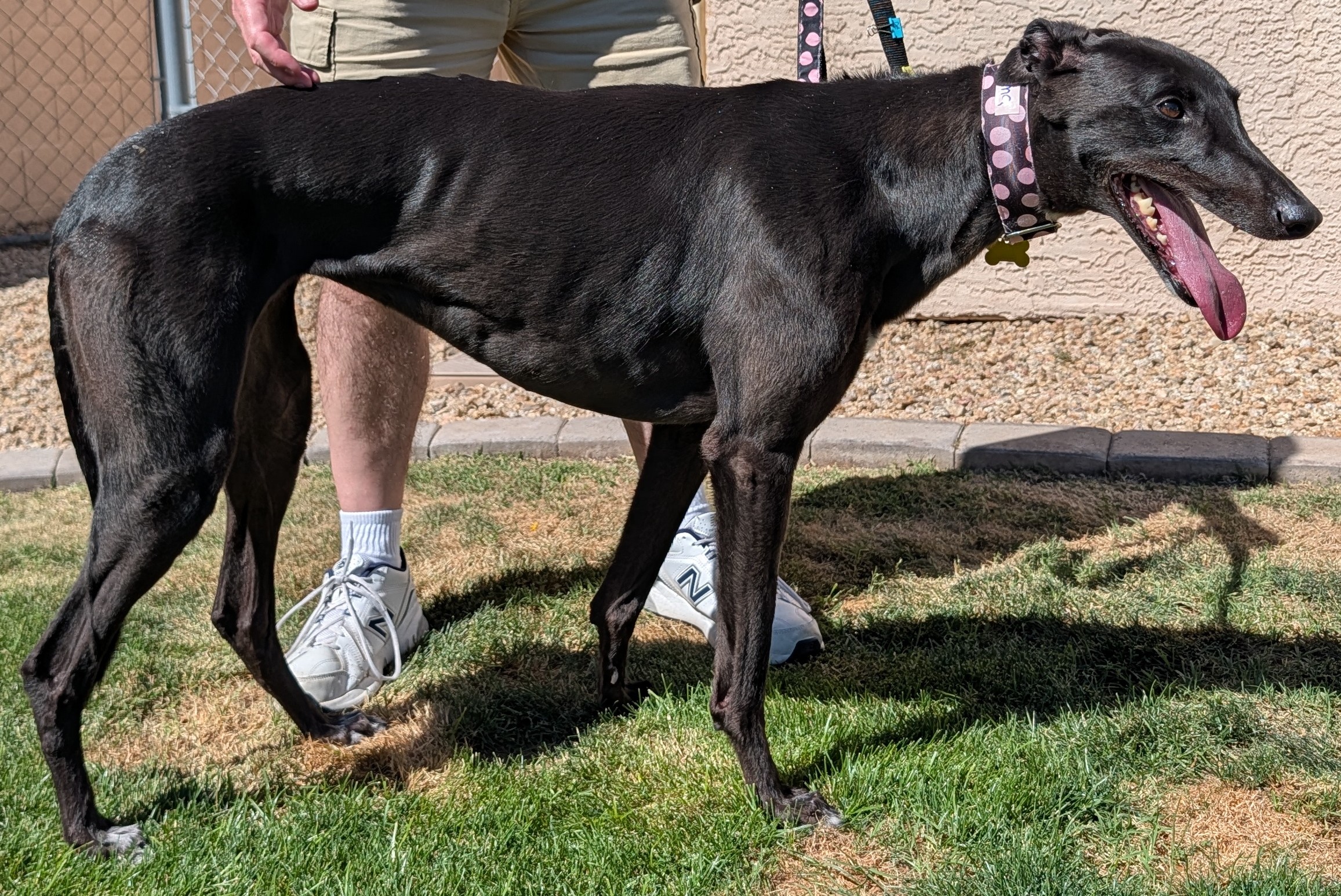 NOTE: We attempt to keep this page as up to date as possible, but a hound may be considered placed before its status is changed to – Adoption Pending here.Cat grades are determined by judging the prey drive of the greyhound when exposed to small fluffy things. We grade them like a report card from A (meaning they have no interest at all) to F (meaning they are drooling). In general, a D or F dog is just shown as NO CATS. Please keep in mind that a kennel dog has not actually lived with a cat.